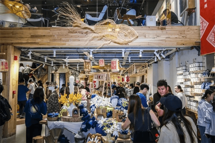 如果说瑞银鸟是银饰的民俗焕新,格物山夏则让苗绣、蜡染等非遗融入了生活日常。“从开始150平方米的体验小店,扩到600平方米的双层空间,是青云路给了我们挖掘民俗文创的底气。”格物山夏负责人蒋泰山谈及扩店的初衷,眼中满是笃定。